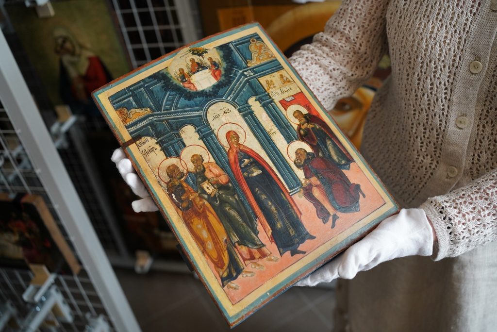 В фондах Музея среди икон, поступивших в хранилище в 20–30-х годах прошлого столетия и спасённых музейными сотрудниками от уничтожения, имеется икона «Явление Пресвятой Богородицы Преподобному Сергию» XVIII века.